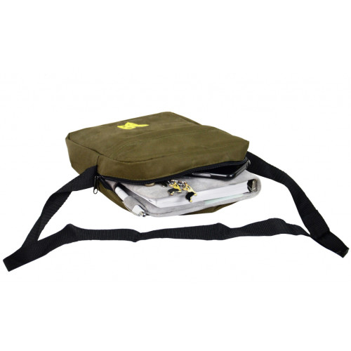 Легка наплічна сумка для нетбука / планшета з діагоналлю 10-11". В центральному захищеному відсіку в окремій кишені розміщується планшет, він фіксується ременем на липі, при цьому залишається досить об'ємний відділ для розміщення документів і великих аксесуарів. На лицьовій стороні сумки розташована зовнішня кишеня на потаєнній блискавці, на тильній стороні є ще додаткова відкрита кишеня. Їх зручно використовувати для розміщення телефону, ключів, візиток і дрібних аксесуарів. Матеріал - щільний практичний в експлуатації поліестер, внутрішнє оздоблення з м'якої нейлонової тканини. Кольоровий декоративний малюнок на лицьовій стороні нанесено методом машинної вишивки, що надає йому об'ємність і високу міцність. Сумка переноситься тільки на плечі. Ремінь регулюється по довжині. Розмір сумки: 23х29,5х6 см Розмір центрального відсіку: 21х27х5 см
