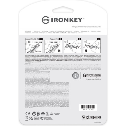 Накопичувач KP200 включає 256-бітове апаратне шифрування XTS-AES. Він також сертифікований за стандартом FIPS 140-3 рівня 3 (сертифікат очікується) для забезпечення безпеки військового рівня з удосконаленнями, що ще більше посилюють захист даних. Схеми накопичувача вкриті шаром спеціальної епоксидної смоли, що робить практично неможливим вилучення компонентів без їхнього пошкодження. Ця міцна епоксидна смола запобігає впливу на напівпровідникові компоненти. Накопичувач оснащений захистом від несанкціонованого доступу, що попереджає власників про такі спроби. Він також включає захист від злому методом підбору паролів і захист від атак типу BadUSB за допомогою вбудованого ПЗ з цифровим підписом. Буквено-цифрова клавіатура вкрита шаром полімеру, що захищає клавіші та приховує їх використання для аналізу відбитків пальців на клавішах.