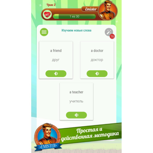 Emister - це додаток для вивчення англійської мови для дітей та дорослих, які люблять гри, веселощі і подорожі. Вас чекають пригоди, тренування і битви! Відправляйтеся в захоплюючі «пригоди» по світу англійської мови разом з Emister і вивчайте тільки найнеобхідніші англійські слова і правила граматики. Завітайте до «тренування» і вдосконалюйте свої знання без нудних тестів і підручників. А ще - візьміть участь в «турнірі» і бийтеся з іншими гравцями онлайн!