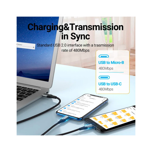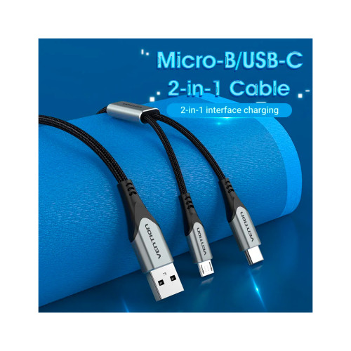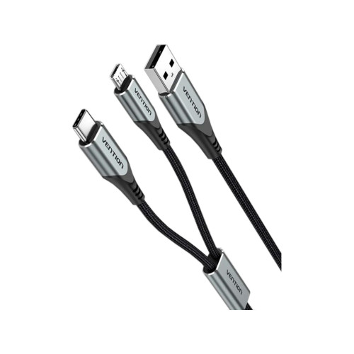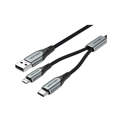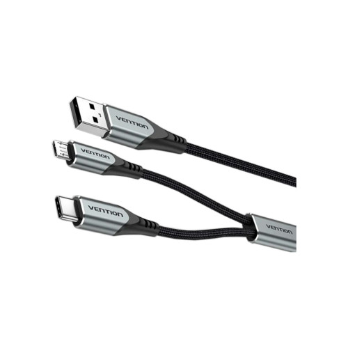 Дата кабель USB 2.0 AM to Micro 5P + Type-C 0.5m Y-Splitter 480Mbps Aluminum Alloy Gray Vention (CQGHD)
