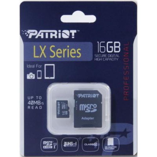 Карти пам'яті PATRIOT microSDHC UHS-I 16GB class 10+SD адаптер (PSF16GMCSDHC10) дозволяють користувачеві відчути миттєвий відгук на будь-які дії і відчути всю плавність і ефективність при роботі. Завдяки адаптеру, що входить в комплект, карта пам'яті може використовуватися як повнорозмірна карта пам'яті SDHC/SDXC.