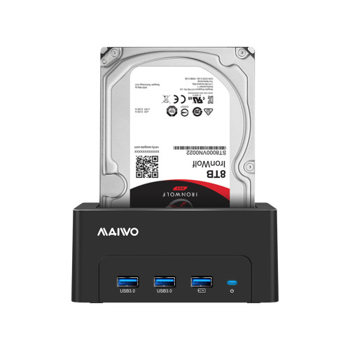 Док-станція Maiwo K308H призначена для жорстких дисків HDD 2.5"/3.5" SATA, а також для накопичувачів SSD, інтерфейс передавання даних USB 3.0. Док-станція має також 3 додаткових порти USB 3.0 на передній стороні корпусу для під'єднання різних USB-пристроїв, а також дуже стильний і практичний корпус, приємний на дотик.