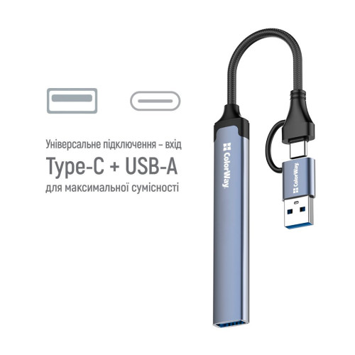 Концентратор ColorWay USB-A/USB-C 4-in-1 USB2.0х2/USB3.0/USB-C2.0 (CW-HUB06)