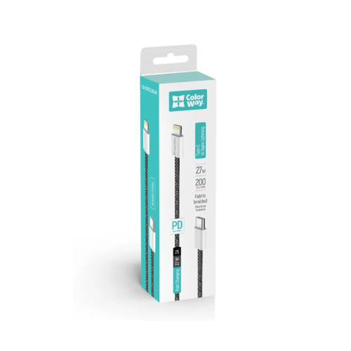 Дата кабель USB-C to Lightning 2.0m (PDF Fast Charging 27W) black ColorWay (CW-CBPDCL068-BK)