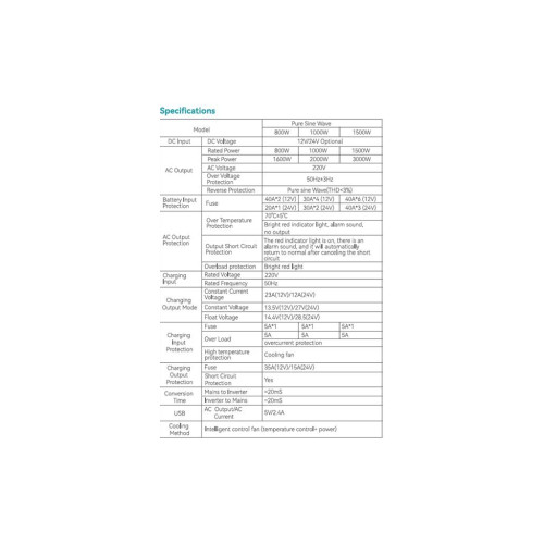 Інтелектуальний захист від перевантаження, високої та низької напруги, короткого замикання, перегріву, перенапруги та перевантаження по струму робить безпечною експлуатацію інвертора.