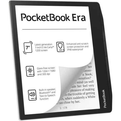 PocketBook Era оснащений найсучаснішим 7-дюймовим екраном E Ink Carta™ 1200 з роздільною здатністю 1264 x 1680 та 300 DPI. Завдяки новій технології, екран став ще приємнішим і комфортнішим у користуванні, адже контраст зображення підвищився на 15%, а час відгуку сенсорного екрана покращився на 20%. Окрім вражаючих оптичних характеристик, новий рідер може похвалитися функцією SMARTlight – адаптивним підсвічуванням для налаштування яскравості та колірної температури екрана.
