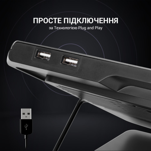Охолоджуюча підставка для ігрового ноутбука CP1540, включає RGB-підсвічування з динамічними світловими ефектами. Завдяки 3 вентиляторам охолодження підставка забезпечує всебічний захист від тепла максимум для 17-дюймових ігрових ноутбуків вагою до 5 кг. 5-рівневе регулювання висоти знімає всю втому під час довгих годин гри. 1 USB-порт також включений для додаткової ігрової периферії підключення.