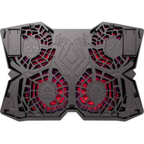 Вбудовані ніжки забезпечують розташування ноутбука під зручним кутом, а обмежувачі перешкоджають зісковзуванню. Підсвітка робить підставку не тільки ефективним девайсом, але й стильним геймерським аксесуаром.