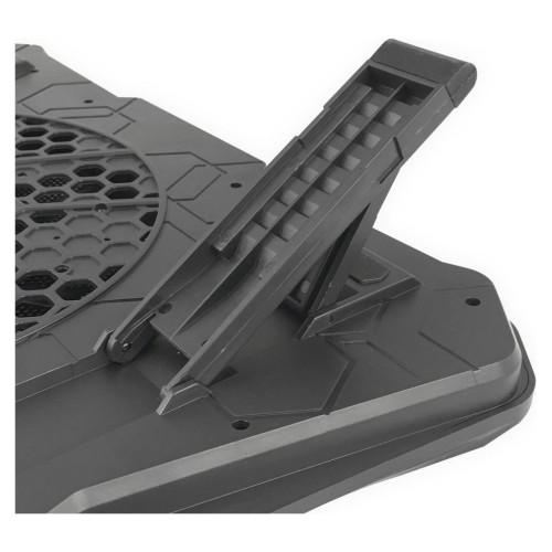 Охолоджувальна панель зі світлодіодним підсвічуванням RGB. Вбудований надзвичайно тихий вентилятор. Він відводить тепло, що утворюється під ноутбуком, охолоджуючи його та знижуючи робочу температуру компонентів, що забезпечує стабільну роботу. Міцна міцна конструкція легко витримує вагу ноутбука. Не потребує зовнішніх джерел живлення - живиться від порту USB ноутбука. Установка не потрібна. Міцний, зручний і легкий у транспортуванні. Сумісний з усіма типами ноутбуків розміром до 17".