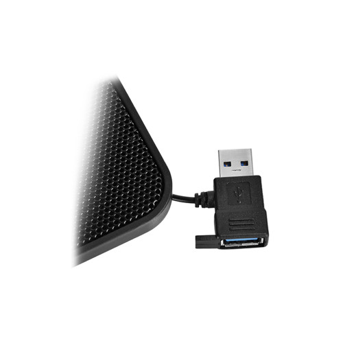 Високошвидкісне USB 3.0 підключення дозволяє підключати зовнішні жорсткі диски безпосередньо до порту підставки. Регулювання кута нахилу підставки збереже ваше здоров'я. Розслабилися, розважаєтесь або працюєте, сидите або лежите, U Pal підлаштується під вашу позу, використовуючи будь-який з шести можливих кутів нахилу. Два вбудованих 14 см вентилятора обертаються на 1000 оборотів в хвилину, залишаючи ноутбук холодним. Шум, однак, залишається помірним, щоб не відволікати вас від роботи або навчання.