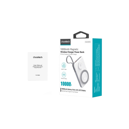 Батарея універсальна Choetech Magnetic Wireless 10000mAh 15W, PD, QC/3.0, 3in1charg. with build-in cable (B695-GW)